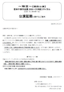 ~琳Ⅲ~【関西公演】 若林千春作品展2026×久末航リサイタル (2/23 フィガロホール) 公演延期に関するご案内