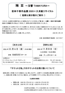 《延期公演・公演チケットに関するお知らせ》琳 Ⅲ 〜玉響TAMAYURA〜 若林千春作品展2026×久末航リサイタル